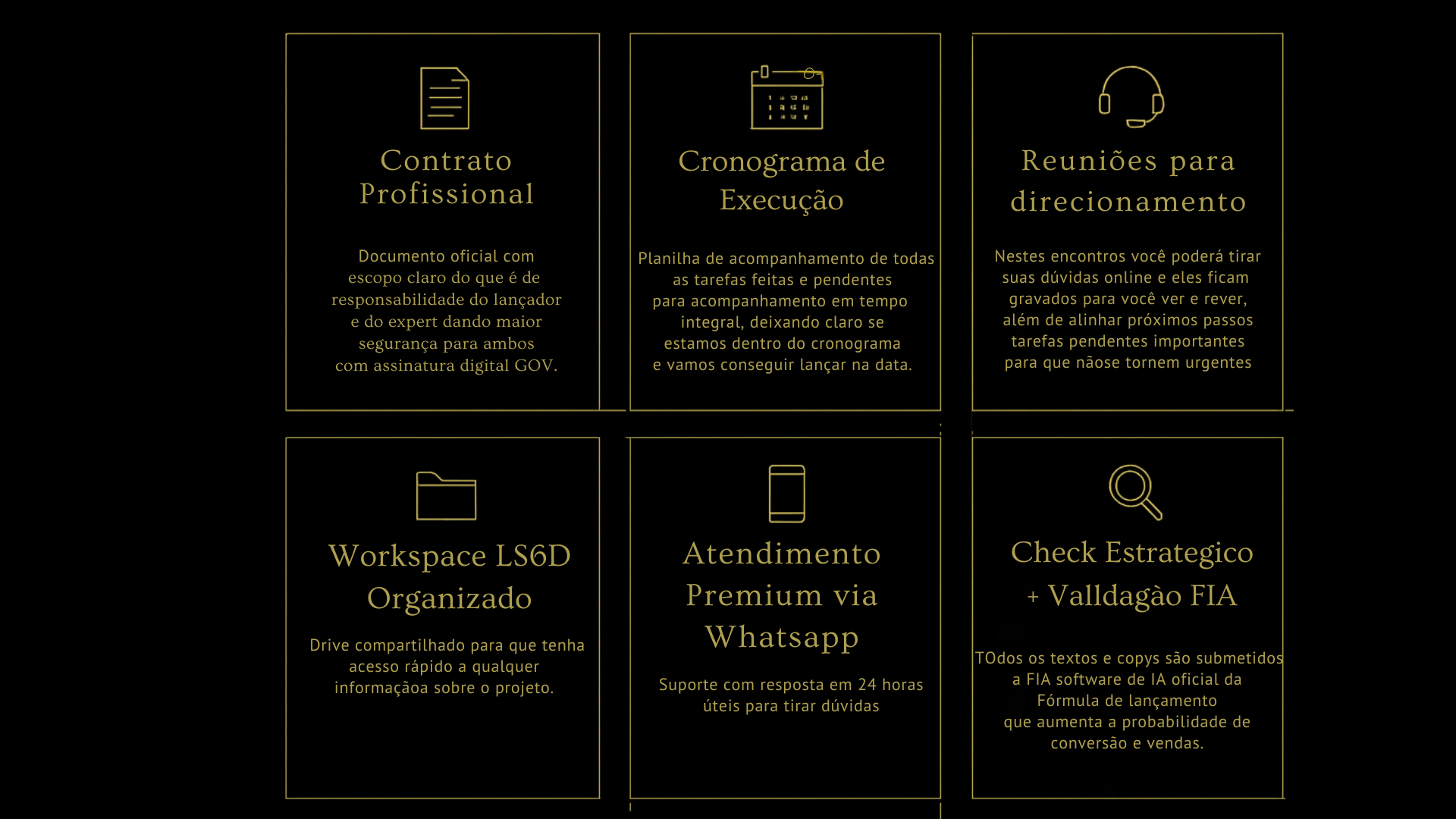 Você recebe execução real, acompanhamento premium e estrutura completa para validar sua oferta.